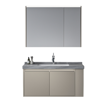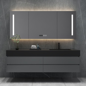 Tocadores de baño de estilo lujoso con losa de roca Gabinete integrado Combinación de luz de espejo Feng Shui Lavabo personalizable inteligente
