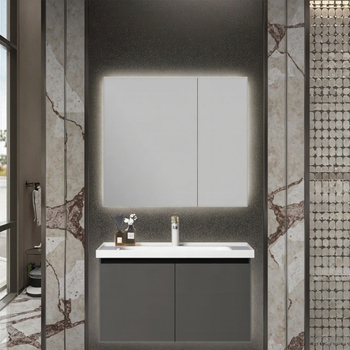 Gabinete de tocador de baño de nuevo diseño 2024, gabinete de baño de tocador de baño montado en la pared con espejo inteligente
