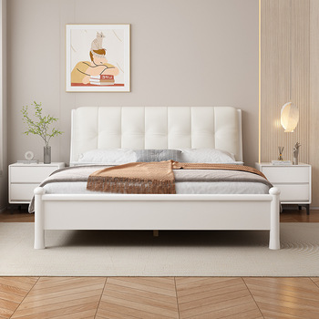 מודרני קרם סגנון 1.8 מ 'נורדי רך מרופד עם מיטה זוגית גבוהה מחסן עץ מלא חדר שינה מיטה גדולה