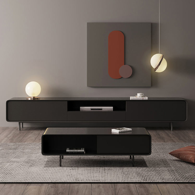 שחור רטרו טלוויזיה ארון בגדים פשוט רצפה מודרנית ארון בגדים בסלון אור יוקרה עץ מלא ארון עם רגלי ברזל